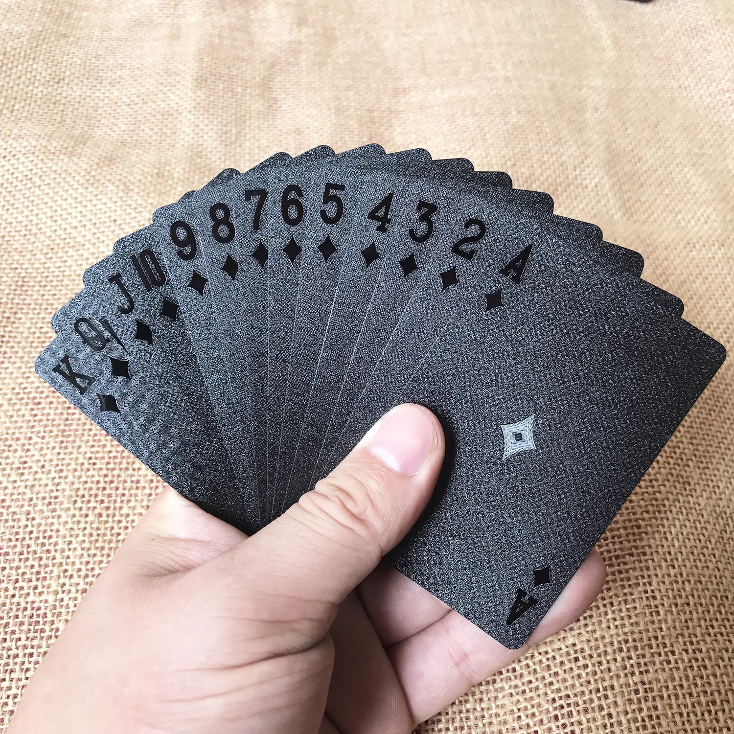 Add a sense of style to your card games with these Black Diamond Playing card. Their unique art value makes them more fun to use. But they are not just artsy because they also boast a high-quality feat. Made of environment-friendly material, these cards are highly flexible, durable, scratch-resistant, non-fade, and waterproof so that they last longer than ordinary playing cards.