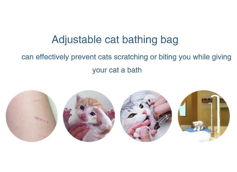 Adjustable : Adjustable cat bathing bag, can effectively prevent cats scratching or biting you while giving your cat a bath.