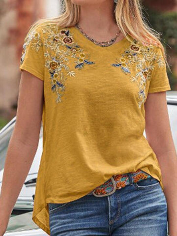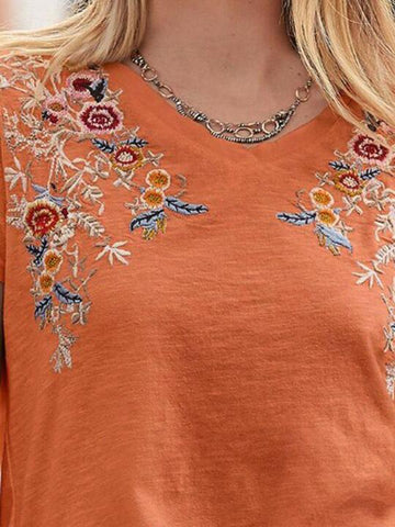 Cotton-Blend Crew Neck Casual Plain T-shirts