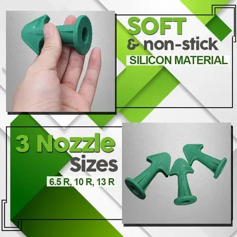 - Different radius: 6.5R, 10R, 13R three different radii Nozzle Plus fulfill your need. They can meet your needs in sealing work when you seal the different places and angles.
